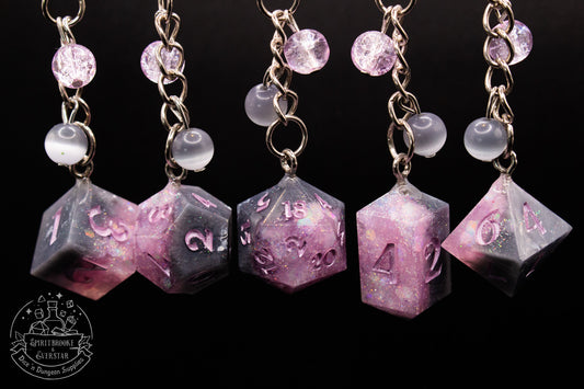 Crafted for durability and style, our RPG dice keychains are available in a variety of colors and designs, making them a great way to personalize your gear or add a touch of adventure to your everyday essentials. Explore our collection and find the perfect keychain to showcase your love for dice and gaming!