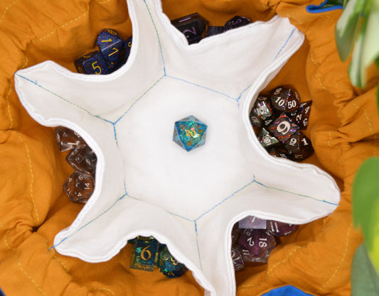 Onze RPG-dobbelsteentassen zijn gemaakt van fantastische materialen en hebben een ruim interieur, waardoor ze ideaal zijn voor het opbergen van meerdere DnD-dobbelsteensets of polyhedrale dobbelsteencollecties. Met een verscheidenheid aan stijlvolle ontwerpen en veilige sluitingen zijn ze niet alleen praktisch, ze zijn ook een must-have accessoire voor elke avonturier.