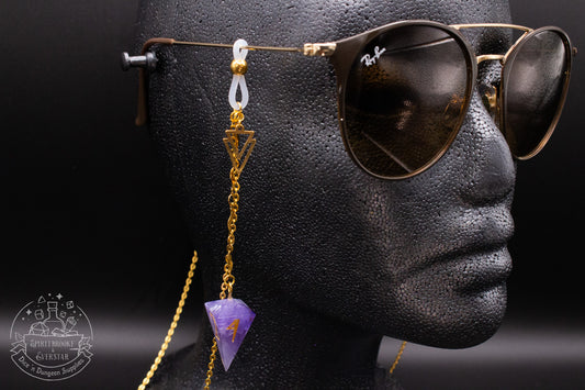 Gold Eyewear Chain Amethyst Dice