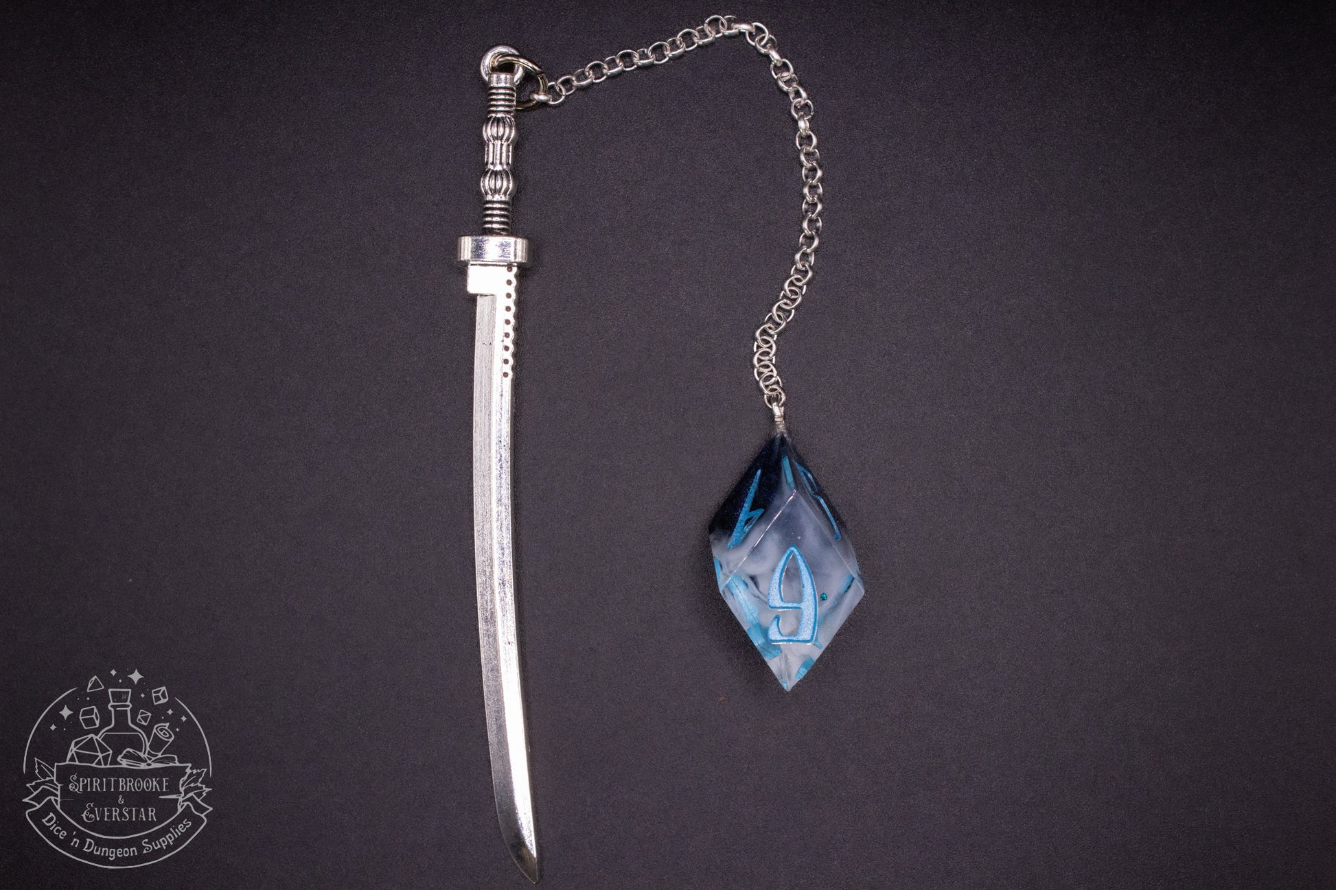 Mark your place in epic adventures with this bookmark, complete with a dangling dice charm that adds a touch of fantasy magic.