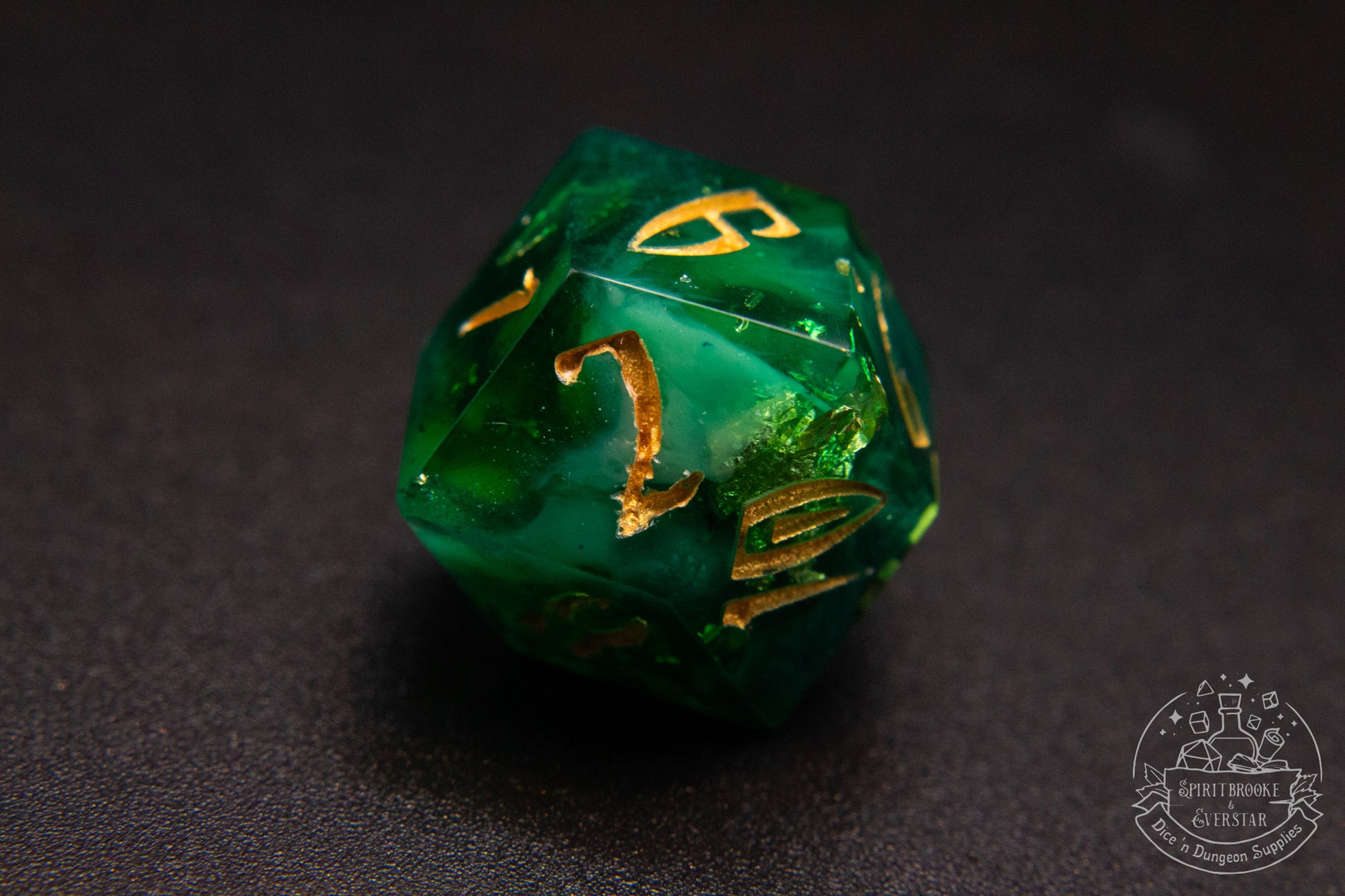 These are handmade and polished polyhedral sharp-edge dice made from resin.