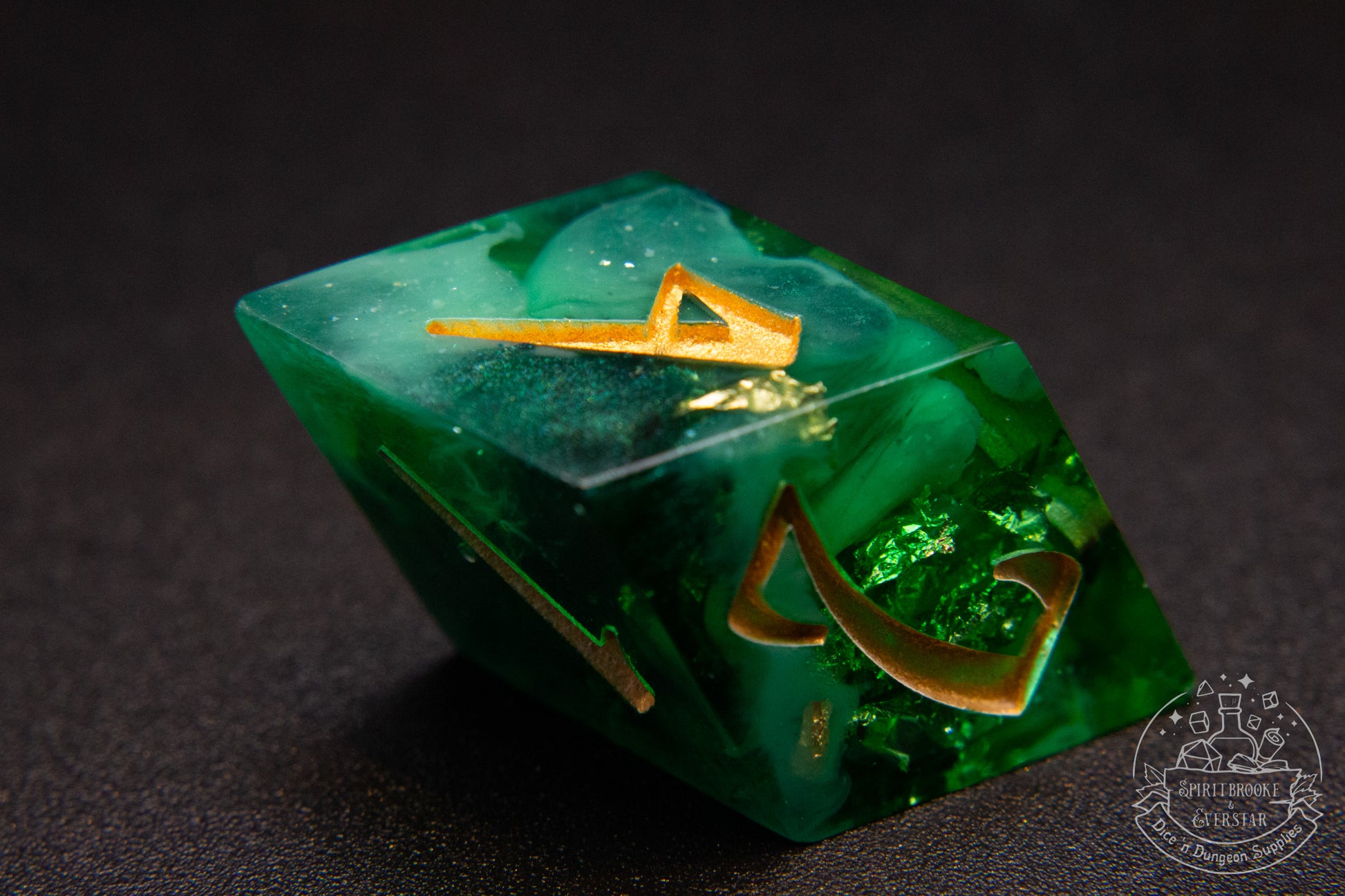 NOTE: All these dice have a different shape than a normal set. The master die of the D12 had errors on the 2 and 8 face which had to be carved out manually. This is a visible flaw and has been accounted for in the price.