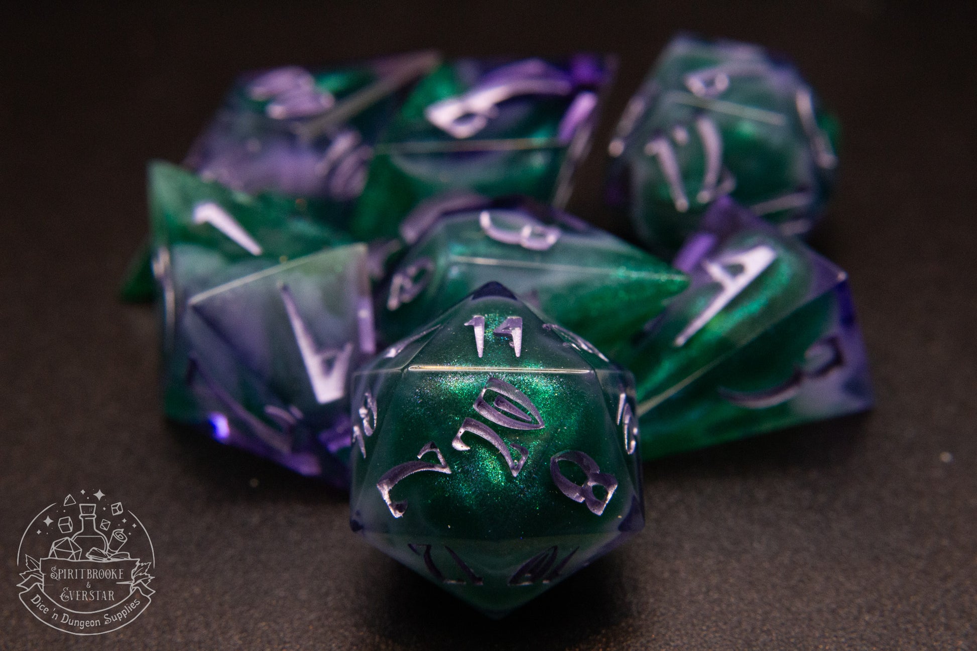 These are handmade and polished polyhedral sharp-edge dice made from resin.