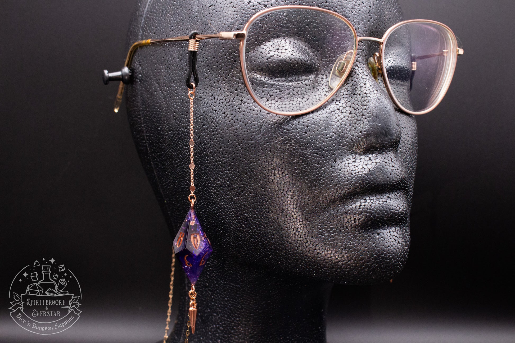 Rose Gold Eyewear Chain Dark Glittery Purple Dice