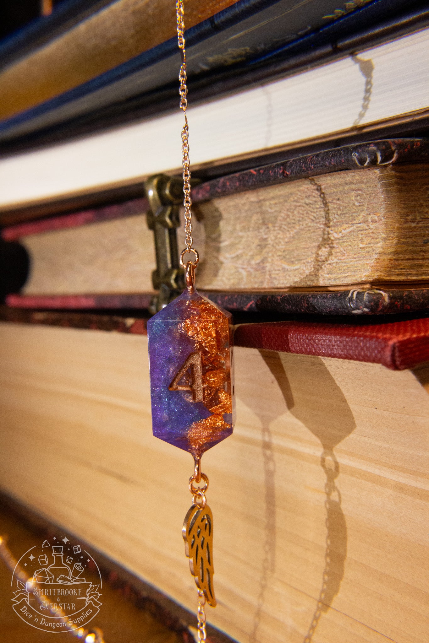 2 Glittery purple with a hint of teal D4s with copper flakes were used for this chain!