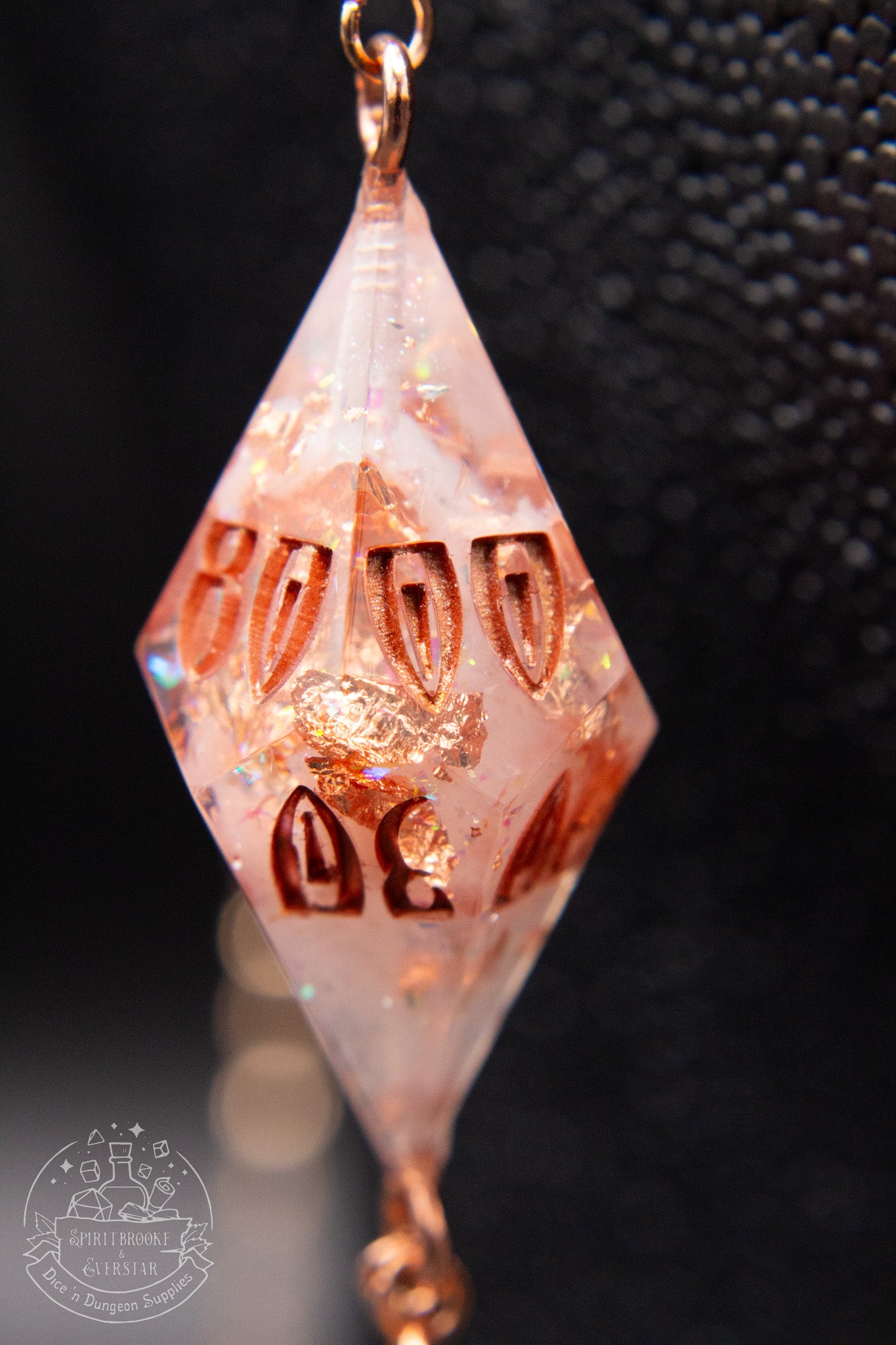 A D10 and a D100 with copper flakes and white coppery swirls were used for the chains!