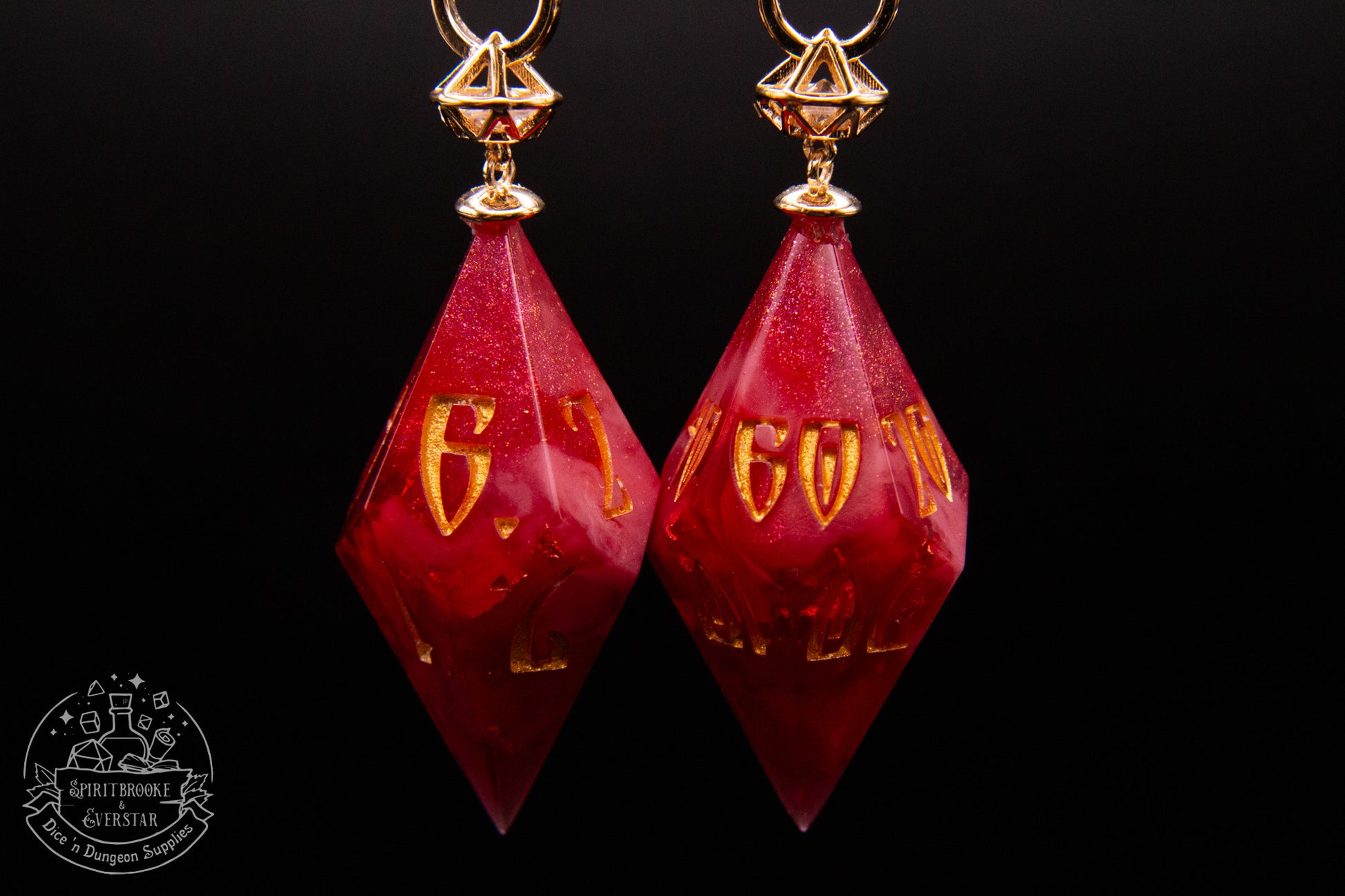 The dice were specifically made to become earrings and are also neatly polished! They would have been perfect dice to play with, but well, they had another destination from the start. Elongated D10 and D100s!