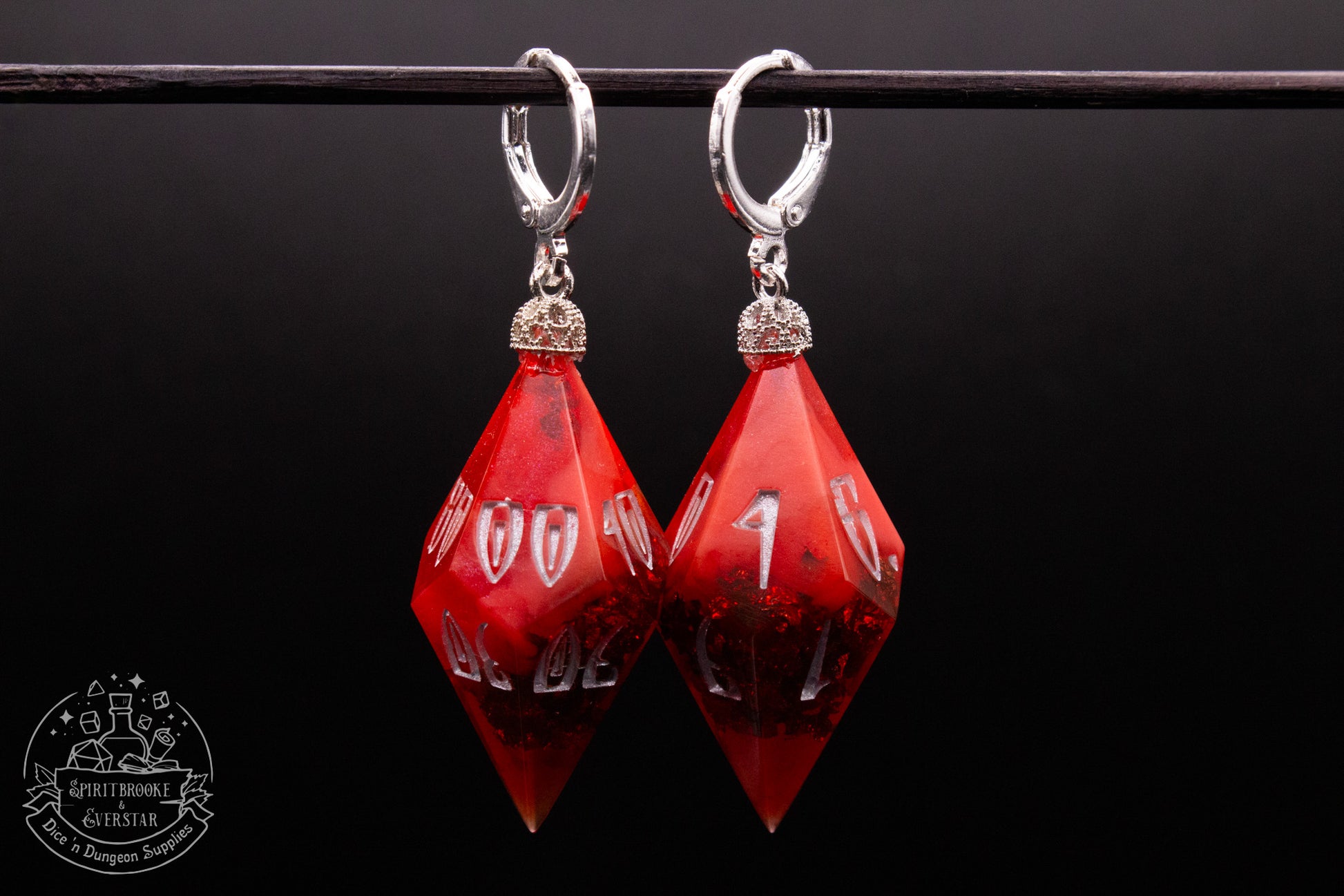 Silver Crimson Radiance D10 + D100 Pointy Earrings