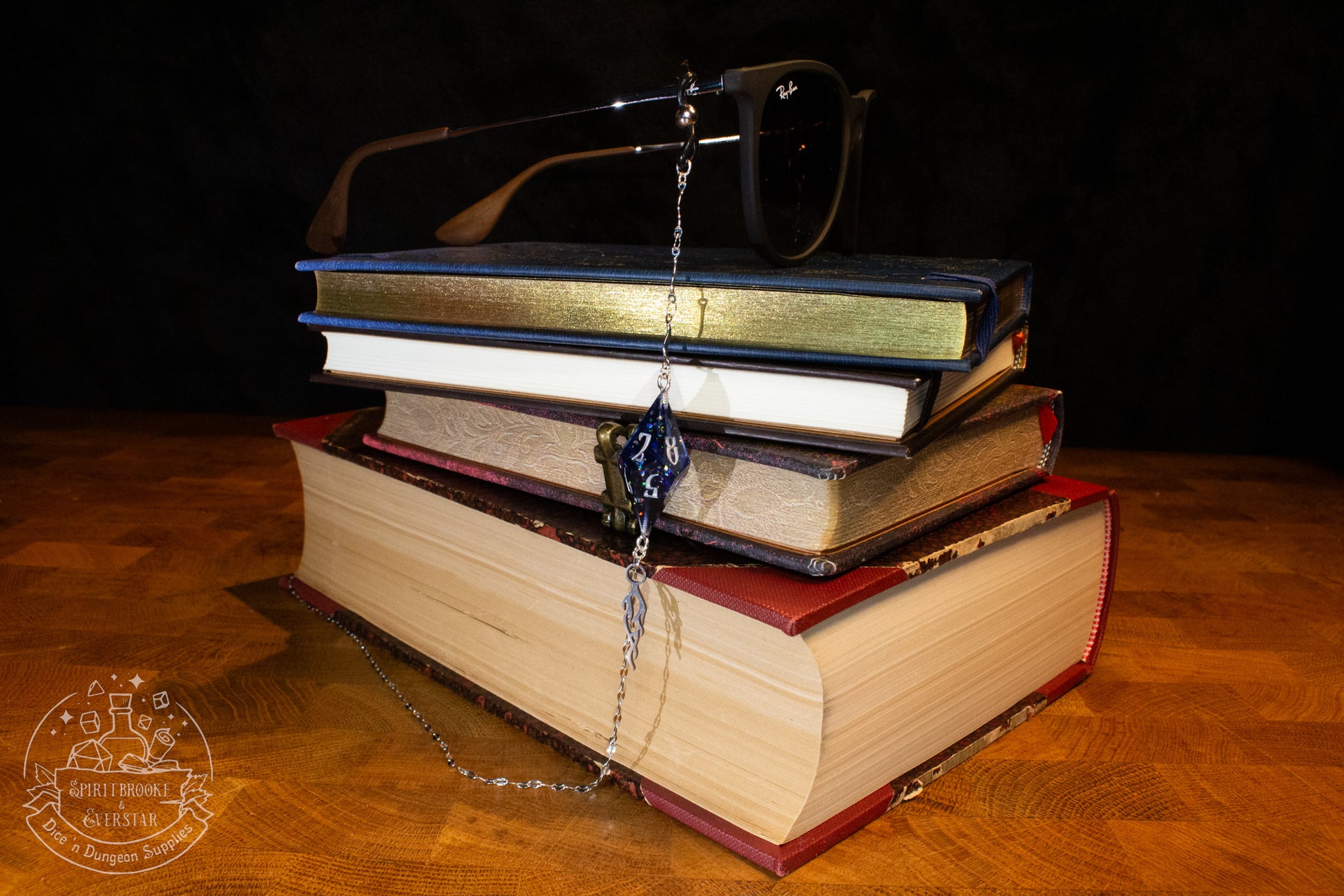 Add a touch of classic fantasy to your everyday look with our silver eyewear chain adorned with handmade resin dice. Perfect for dreamers and gamers alike, this delicate chain blends elegance and fantasy charm in one unique accessory.
