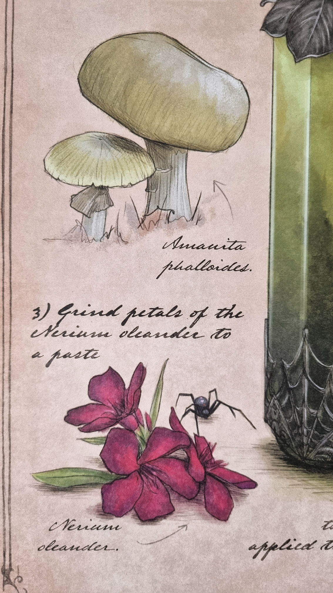 An illustration of our own design! Vintage art style featuring a Vial of Poison.